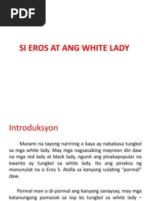 Kwento tungkol sa white lady. SI EROS AT ANG WHITE LADY. Gabi-gabi po ay lalong humihigpit ang pamimilit niyang makuha ang bata halos maiyak-iyak si Roberto. Mga halimbawa ng maikling kwento tungkol sa pasko.
