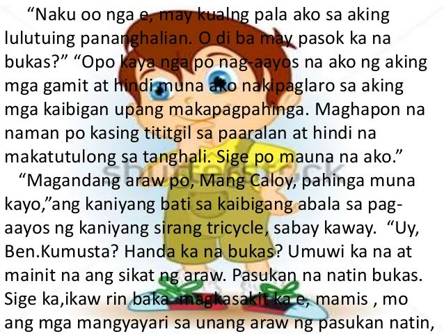 MAIKLING KWENTO Narito ang limang 5 halimbawa ng mga maikling kwento na mapupulutan ng magandang aral. Ng kapwa batat maging matanda man. Si Juan Na Laging Wala Sa Klase.