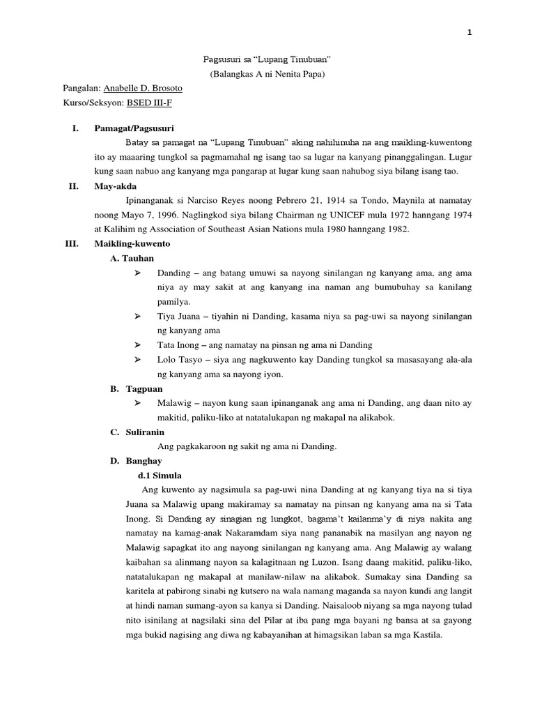 Lupang Tinubuan Narciso G Reyes Pdf