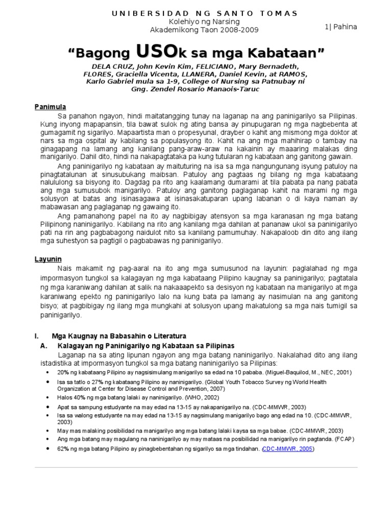 Bagong Usok Sa Mga Kabataan Isang Pamanahong Papel Tungkol Sa Paninigarilyo Ng Kabataang Pilipino Pdf