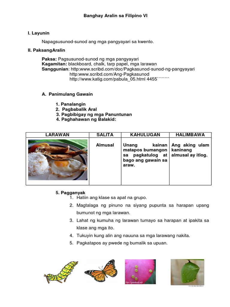 Some of the worksheets for this concept are Filipino baitang 1 ikatlong markahan Filipino 2 3rd qtr filipino 1 Banghay aralin sa pagtuturo ng panimulang pagbasa para sa Basic education filipino department pamantasang holy angel Panitikang asyano ng mag aaral sa filipino draft. Banghay Ito ay tumutukoy sa pagkakasunod-sunod ng mga pangyayari sa kwento. Nakaayos ang mga pasalaysay na pangyayari.